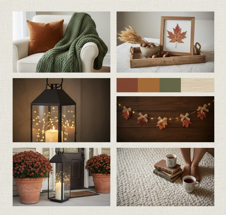 Update artwork or prints to reflect autumn themes using framed leaf art or autumn landscapes in earthy tones.