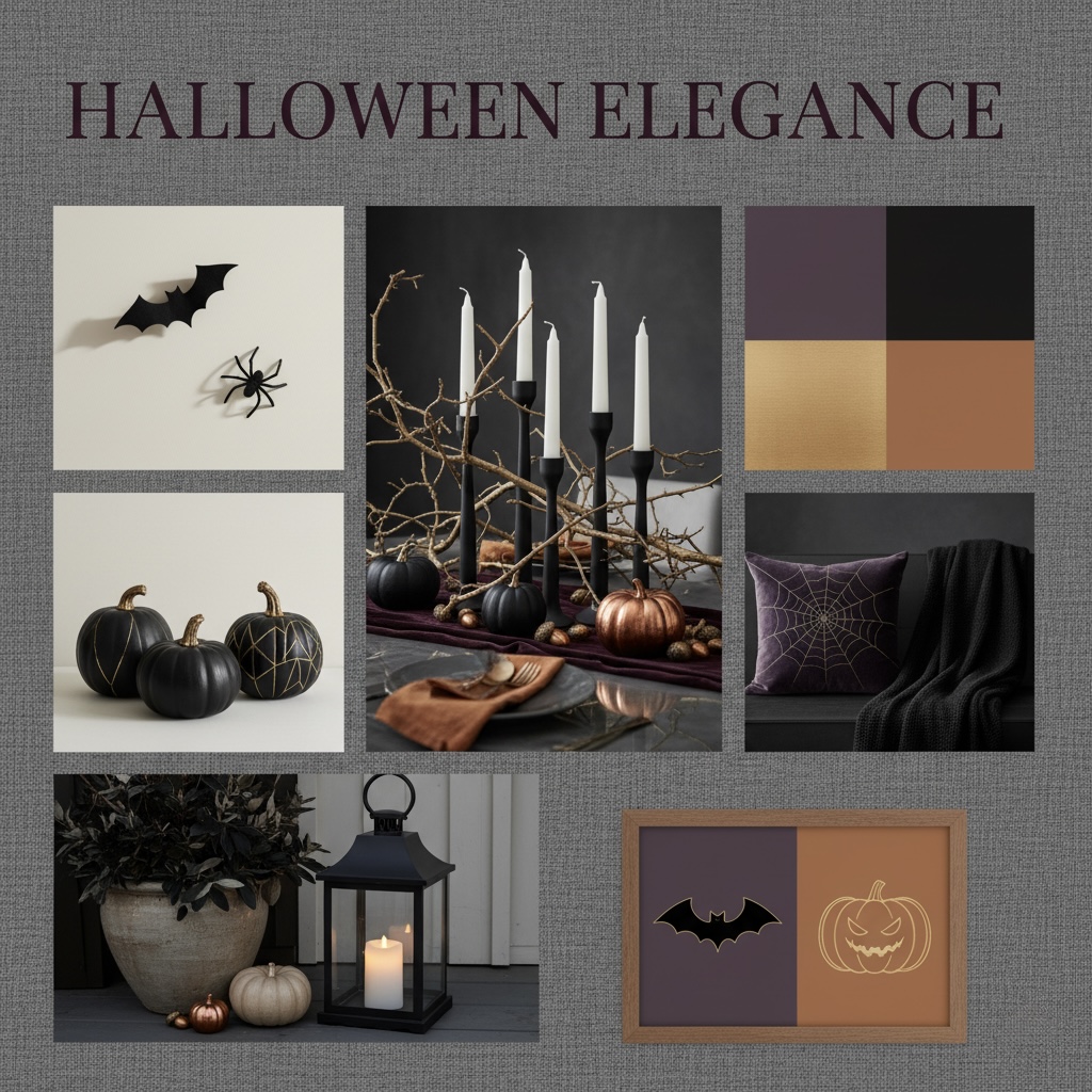 Infuse your interiors with deep, muted tones such as plum, black, and gold for an elegant Halloween atmosphere.